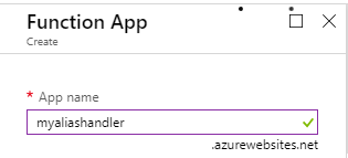 Please note that the name/URL of the Azure Function App is not the HTTPS endpoint which will be used as the alias by your end users. Feel free to name the Azure Funtion App in accordance with your naming conventions as the CNAME record will be used for friendly naming.